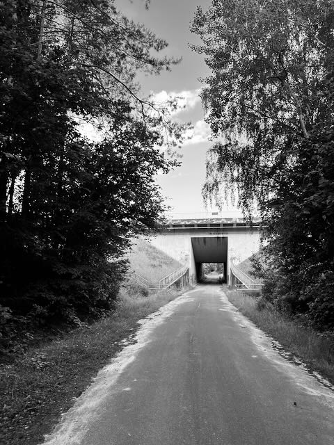 Dabei findet man dann auch versteckte Orte. Eine Brücke im Wald. Eine Brücke, unter der ich schon öfters mit der Bahn gefahren bin, aber nicht wusste, was da oben über die Bahnstrecke geht. Jetzt weiss ich es, es ist im Grunde genommen ein Waldweg auf einer Brücke … so fühlt es sich zumindestens an, wenn man auf beiden Seiten hohe Gräser und Pflanzen findet, die diesen Ort für sich zurückerobern. Ihn wieder zum Teil des Waldes machen.